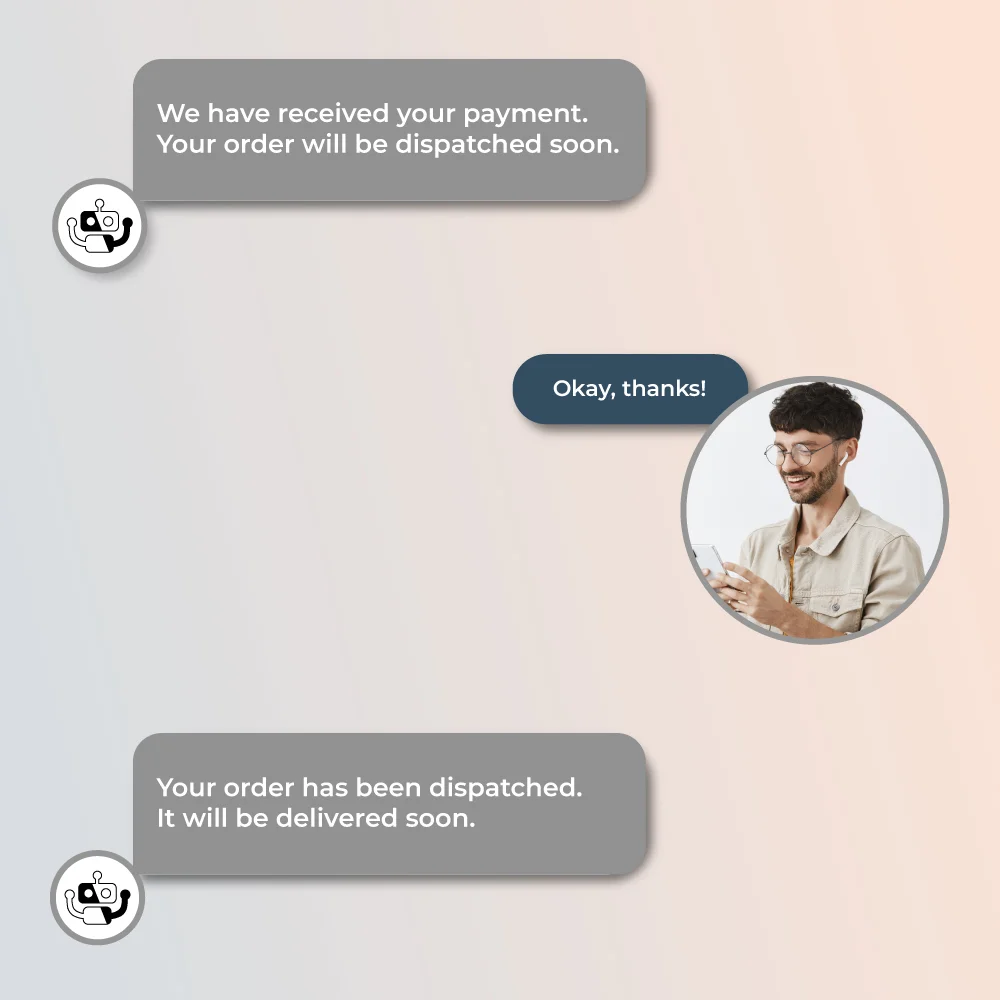 Automate your post-purchase processes with the eCommerce chatbot. You can use WhatsApp message templates to share these updates