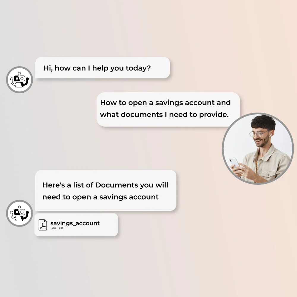 Deliver personalized advice by empowering agents with a fully-integrated Banking chatbot, serving as a virtual advisor. Load policies and documents to the platform to enable the discovery of suitable solutions.