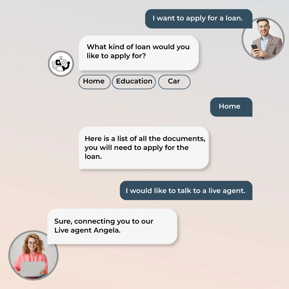 Make your clients’ lives easier. Help them make transactions, apply for loans, buy or renew Insurance policies, and even make claims with digital frictionless engagement using banking bots.
