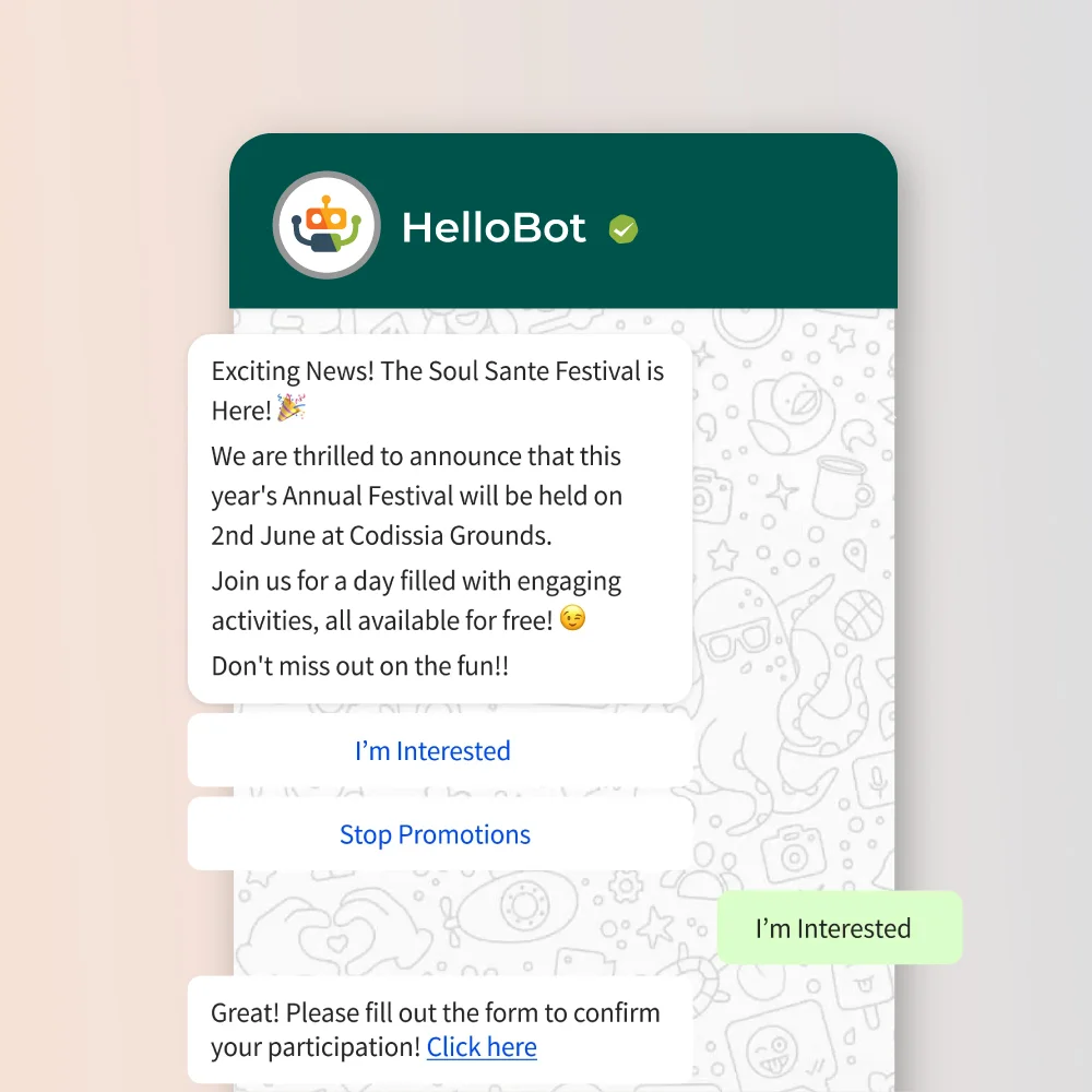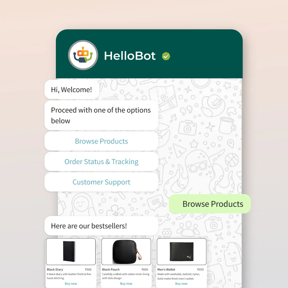 Build your chatbot with HelloBot‘s GenAI and have personalised conversations at scale. Automate your WhatsApp conversations to convert more prospects effortlessly. Choose your business template from a library of WhatsApp templates catalog.